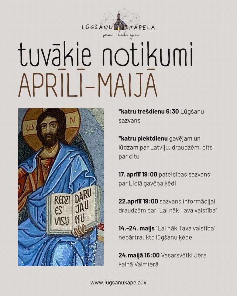 SVARĪGI!!!!! Trešdienas rītu iesāksim kopā lūdzot Zoom platformā no 6:30-7:00. Links: ŠEIT.