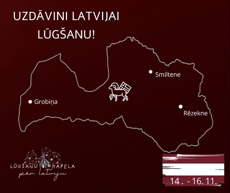 Esi mīļi aicināts pievienoties lūgšanām, kuras ceļ LŪGŠANU KAPELU PĀR LATVIJU!